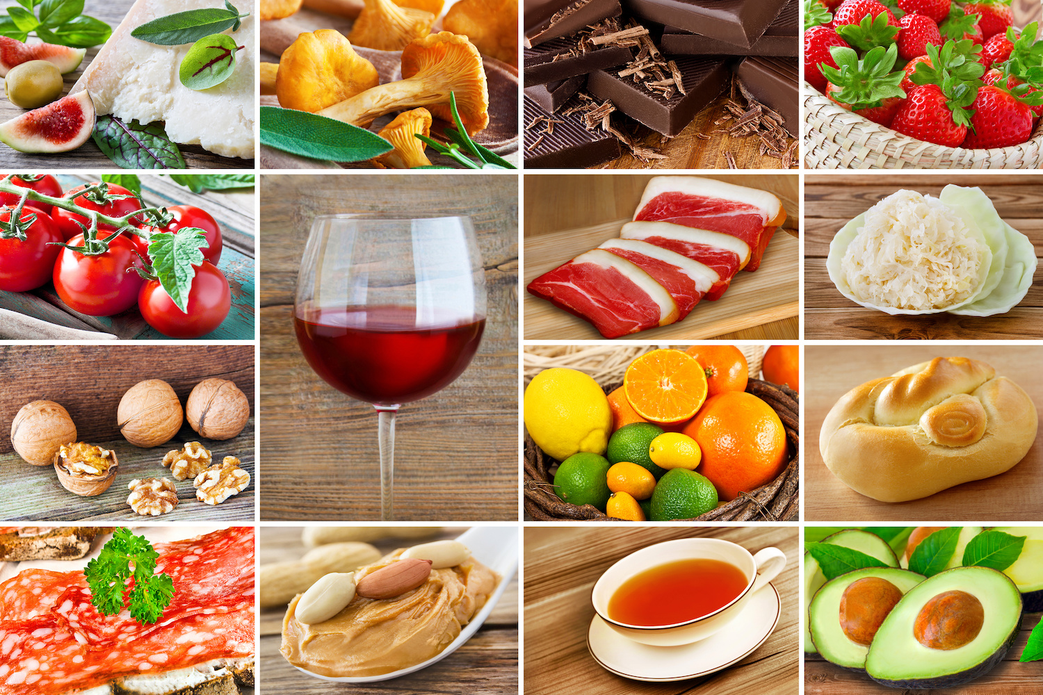 Nahrungsmittel, die bei einer Histaminintoleranz häufig nicht vertragen werden. Umfangreiche Listen finden Sie auf der Schweizer Webseite Histaminintoleranz.ch