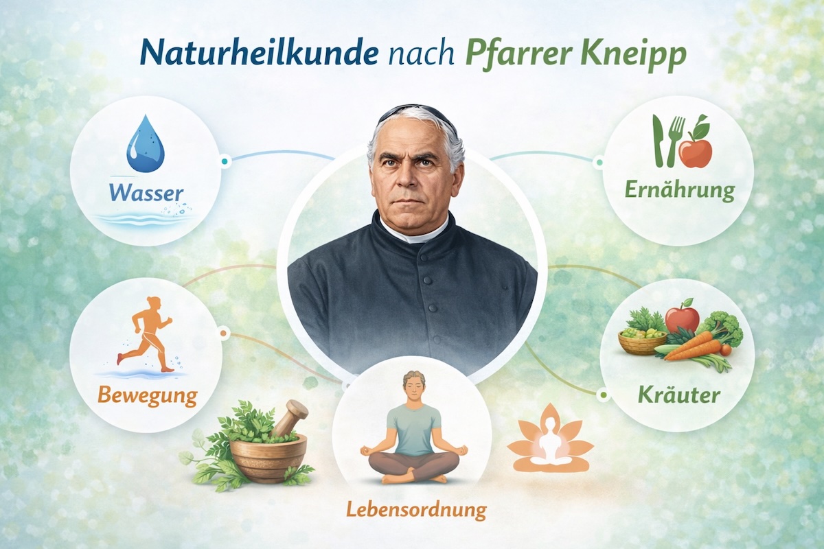 Begründer der deutschen Naturheilverfahren ist der berühmte Pfarrer Kneipp. Er stellte 5 Säulen der Naturheilkunde auf, die wir heute noch in etwas modernisierter Form weiter verfolgen.